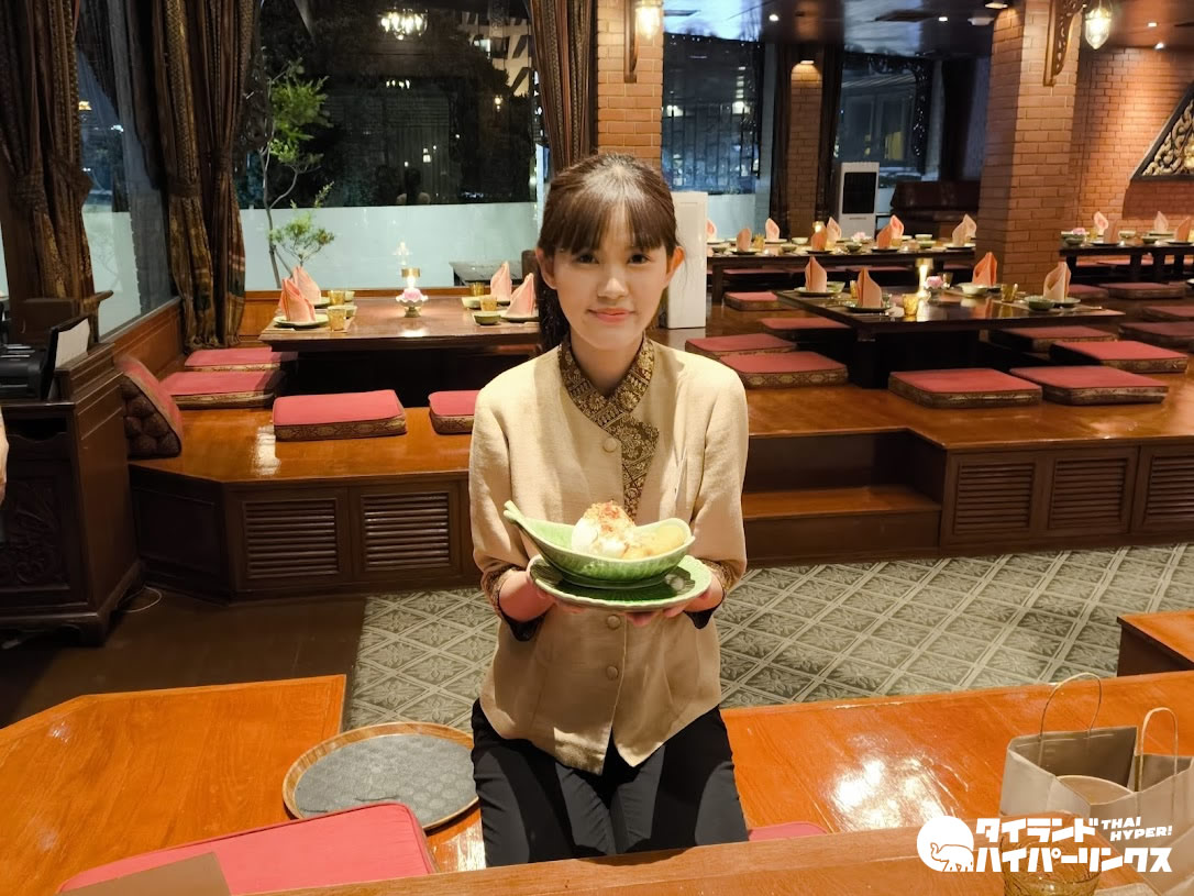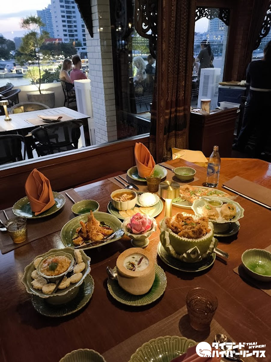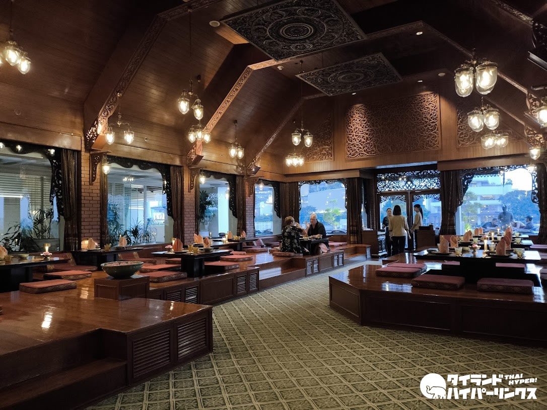 夕食はタイ料理レストラン「タラトン」へ。御覧の通り「宮廷風」ではありますが、ドレスコードはカジュアルなのでお気軽に。毎週木曜日から日曜日までの夜7時からは、タイ伝統舞踊ショーもみられます。