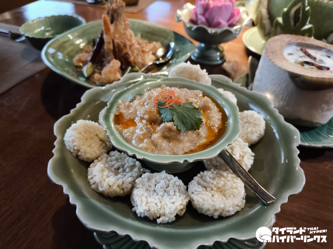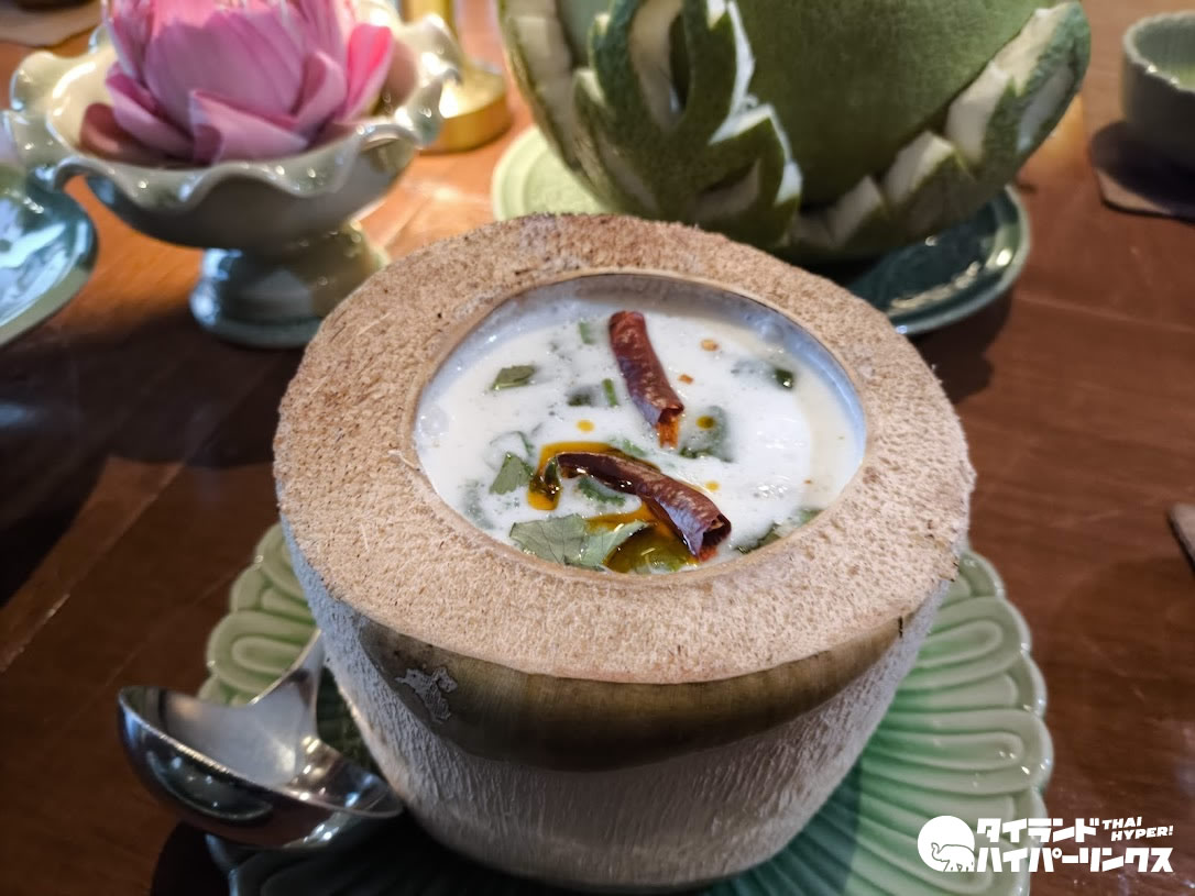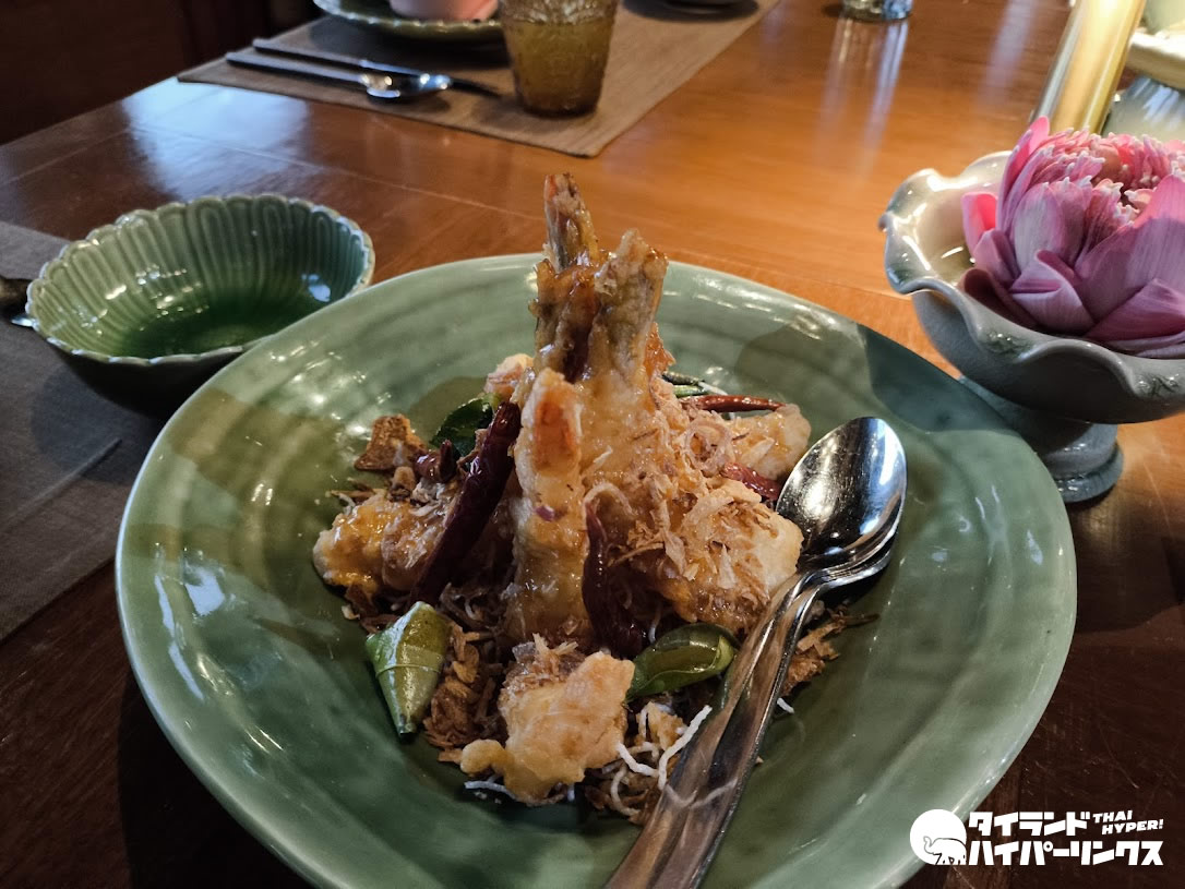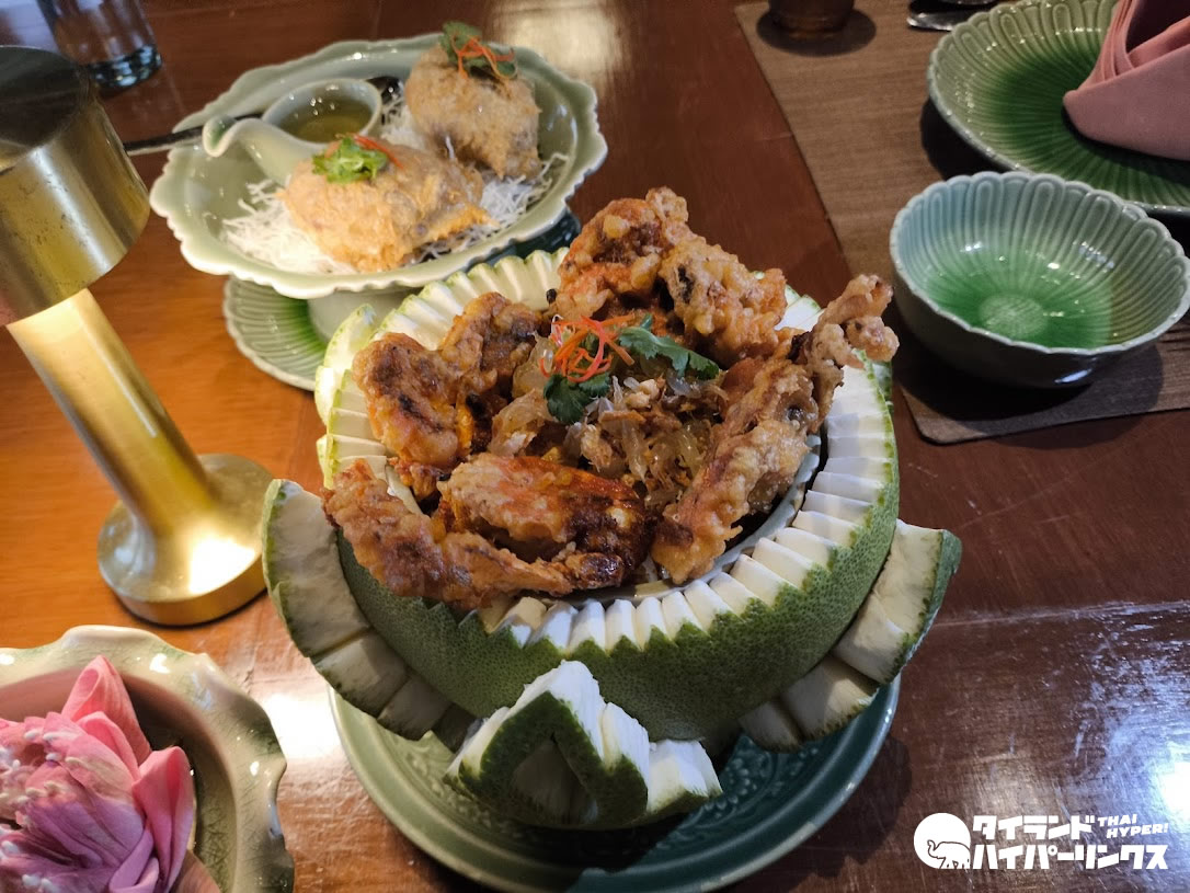 夕食はタイ料理レストラン「タラトン」へ。御覧の通り「宮廷風」ではありますが、ドレスコードはカジュアルなのでお気軽に。毎週木曜日から日曜日までの夜7時からは、タイ伝統舞踊ショーもみられます。