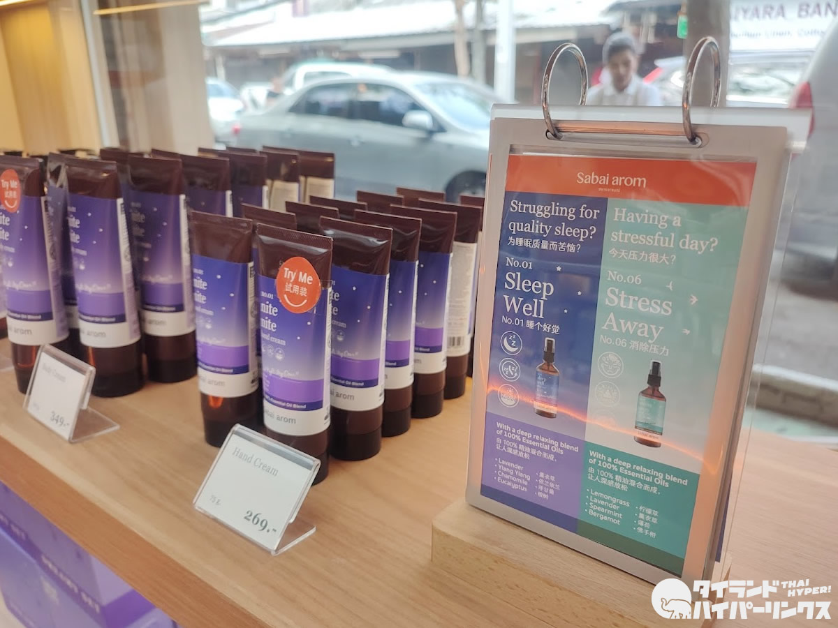 「Sabai arom」は、最近また注目度が上昇中。「Sabai arom」のハンドクリームやボディクリーム、アロマオイルなどを手に入れることを目的の一つとして、タイ旅行に来る人もいるはずです!