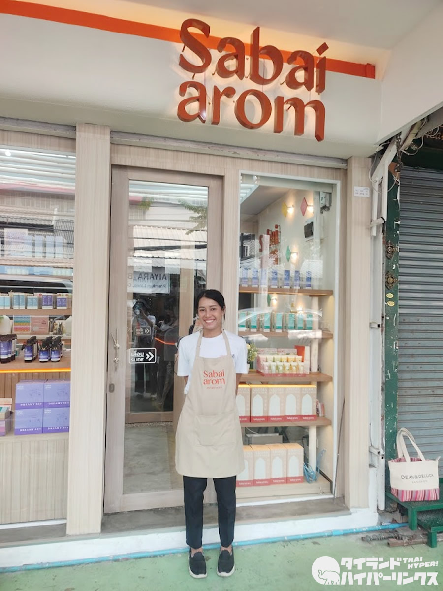 そんなわけで、話題のナチュラルボディケアブランドの店「Sabai arom」の、チャトゥチャック・ウィークエンドマーケットにある実店舗。2023年12月にオープンしたばかりで、まだ知らない方も多いはず。ぜひタイ旅行に向かうお友達にも教えてあげてください!