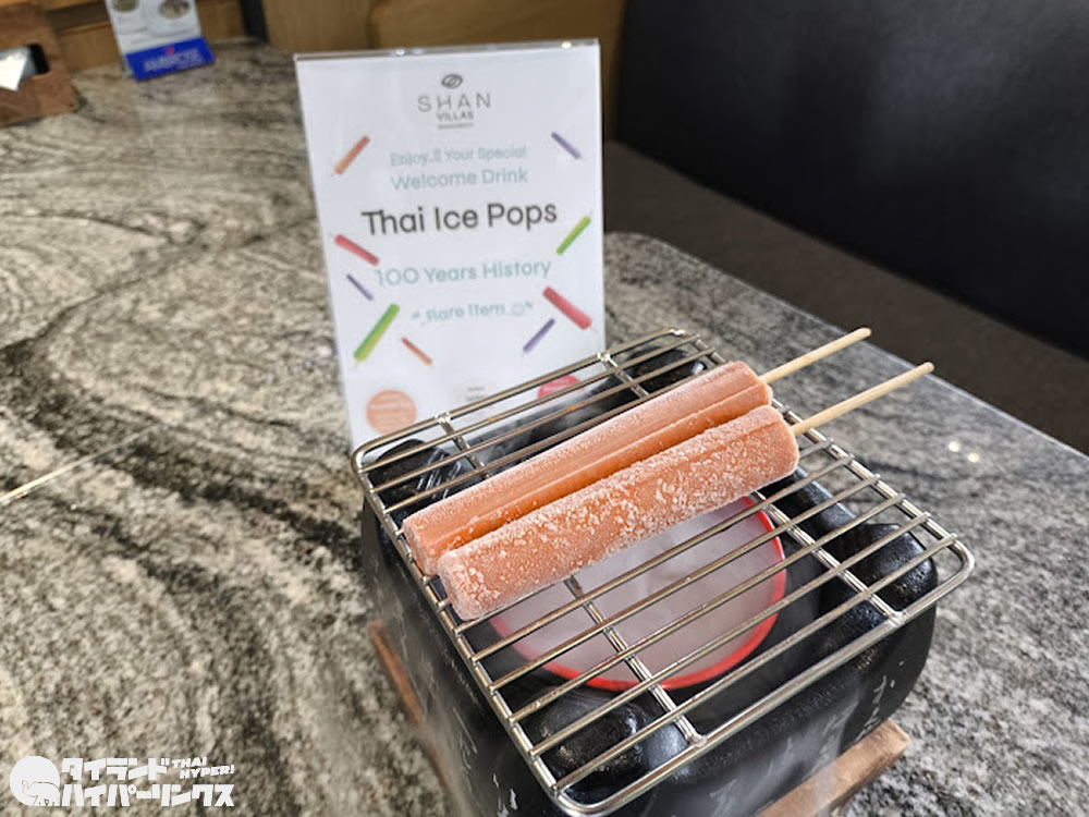 チェックイン時には、なんとタイ紅茶のアイスキャンディーがウェルカムドリンク代わりに登場。