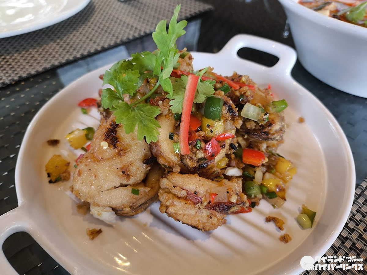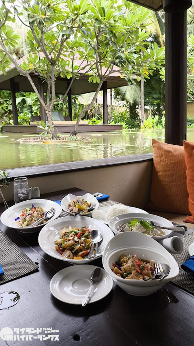 朝にバンコクを出発して「シェラトン ホアヒン プランブリ ヴィラ」に到着したのがお昼時。チェックインは午後2時なので、それまで間に「Dalah」の水辺の席でランチをいただきます。