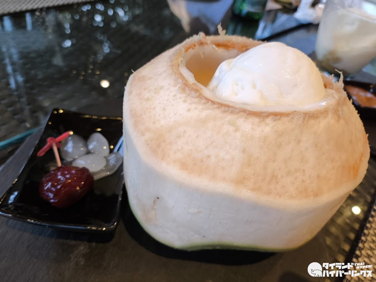 スイーツも充実で、アイスクリームの入った丸ごとココナッツ。