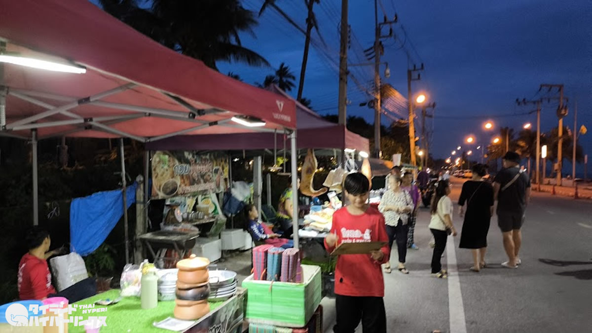 道路にはイカやエビなどの屋台も並び、ちょっとしたナイトマーケットのようになりました。