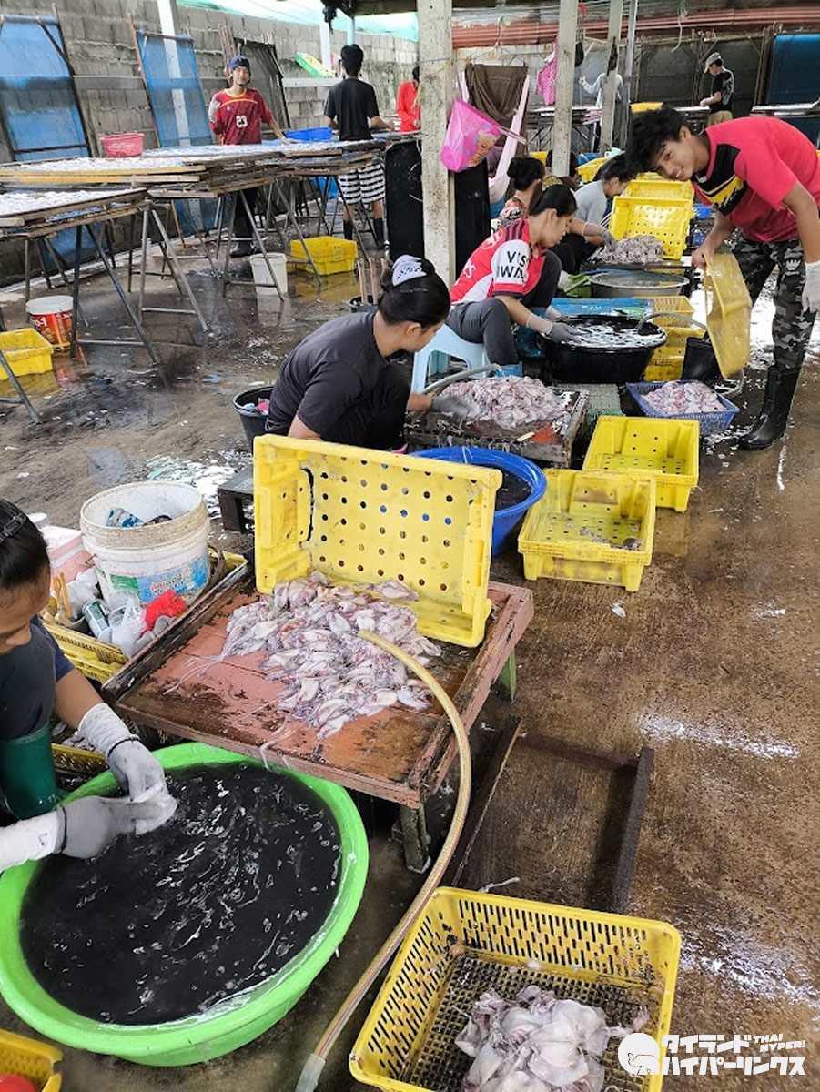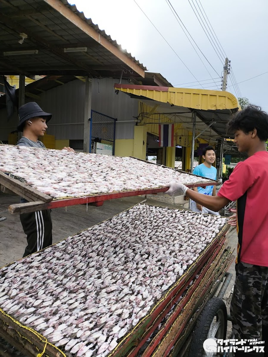 7時半からは、ホテルの自転車ツアーに参加しました。今回訪ねたのはプランブリ名物のイカを処理する作業場。もちろんバンコクに帰るには、イカを購入。今更「もっとたくさん買うべきだった」と悔やんでいます。美味しかった!