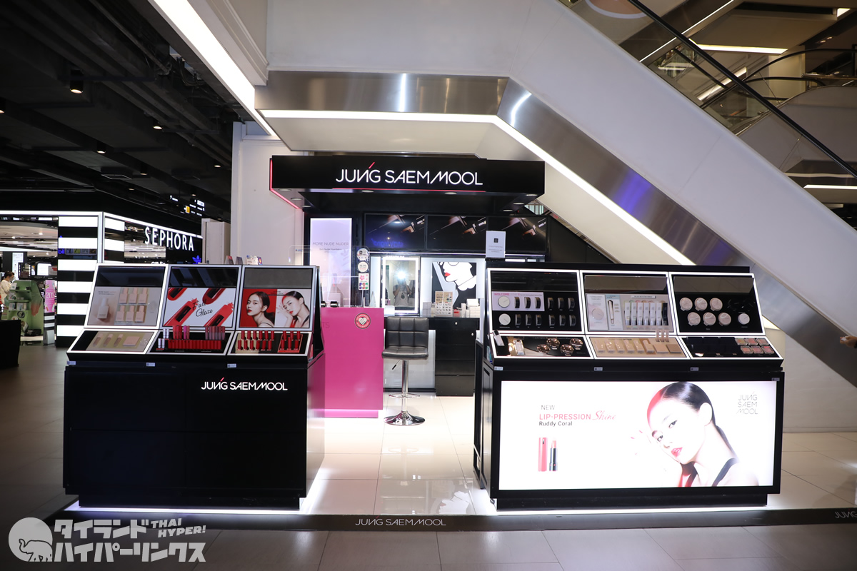 こちらがG階にある韓国の人気コスメブランド「Jung Saem Mool」。「ALAND」でもらったメイクアップ体験バウチャーは、こちらでご利用ください。メイクアップ体験は前日の予約がオススメです。