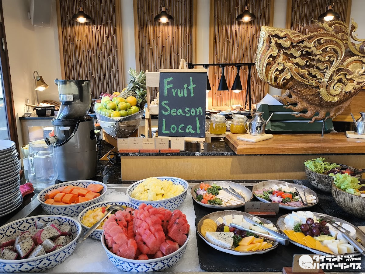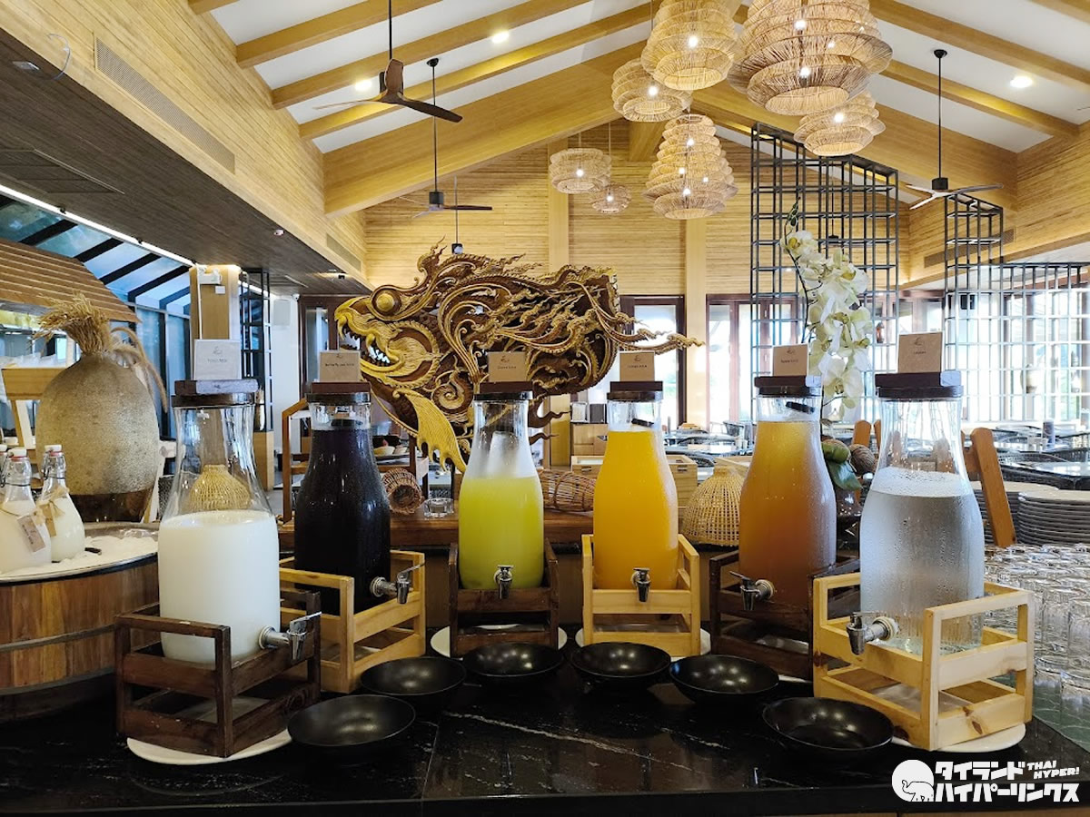 最後に紹介するのが、ホテルの宿泊の一番の楽しみの一つとも言える朝食のビュッフェです。シネープーケットでの朝食ブッフェはレストラン「SAI Bistro & Bar」で6時半から10時半まで。スパーリングワインまでも用意された最高の朝でした。自分で作るフルーツ&野菜ジュースも贅沢ですね!