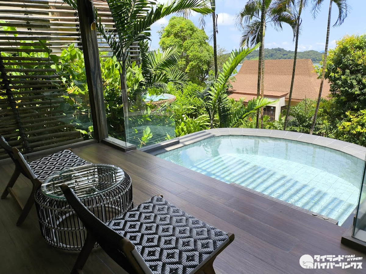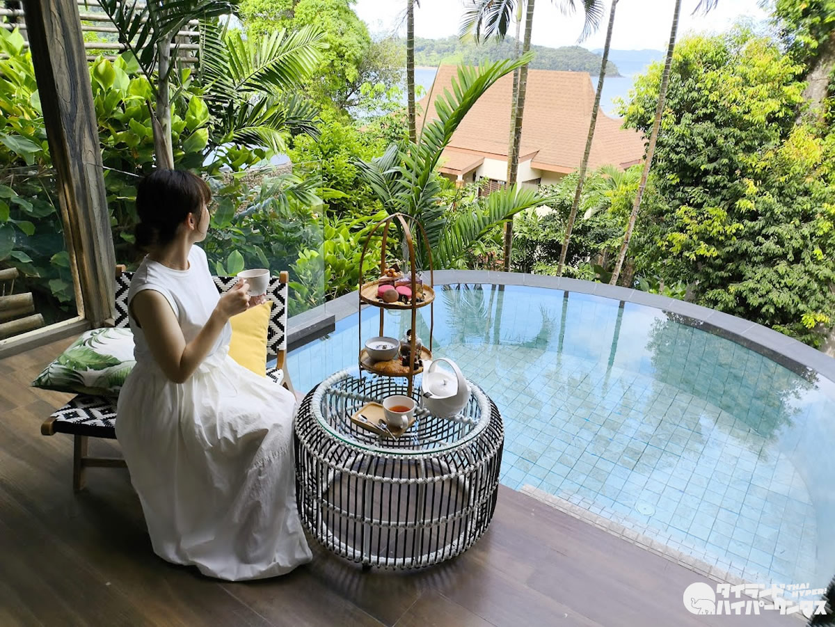 シネープーケットの公式サイトによると「Sinae Sea Sai」は、自然の中で贅沢なひと時を楽しみたい人にぴったりの場所。タイの伝統的な漁法をイメージしたデザインになっていて、テラスのプールに入れば、目の前にはジャングルや村の絶景が広がり、まるで自然と一体になったような気分になれるのです!