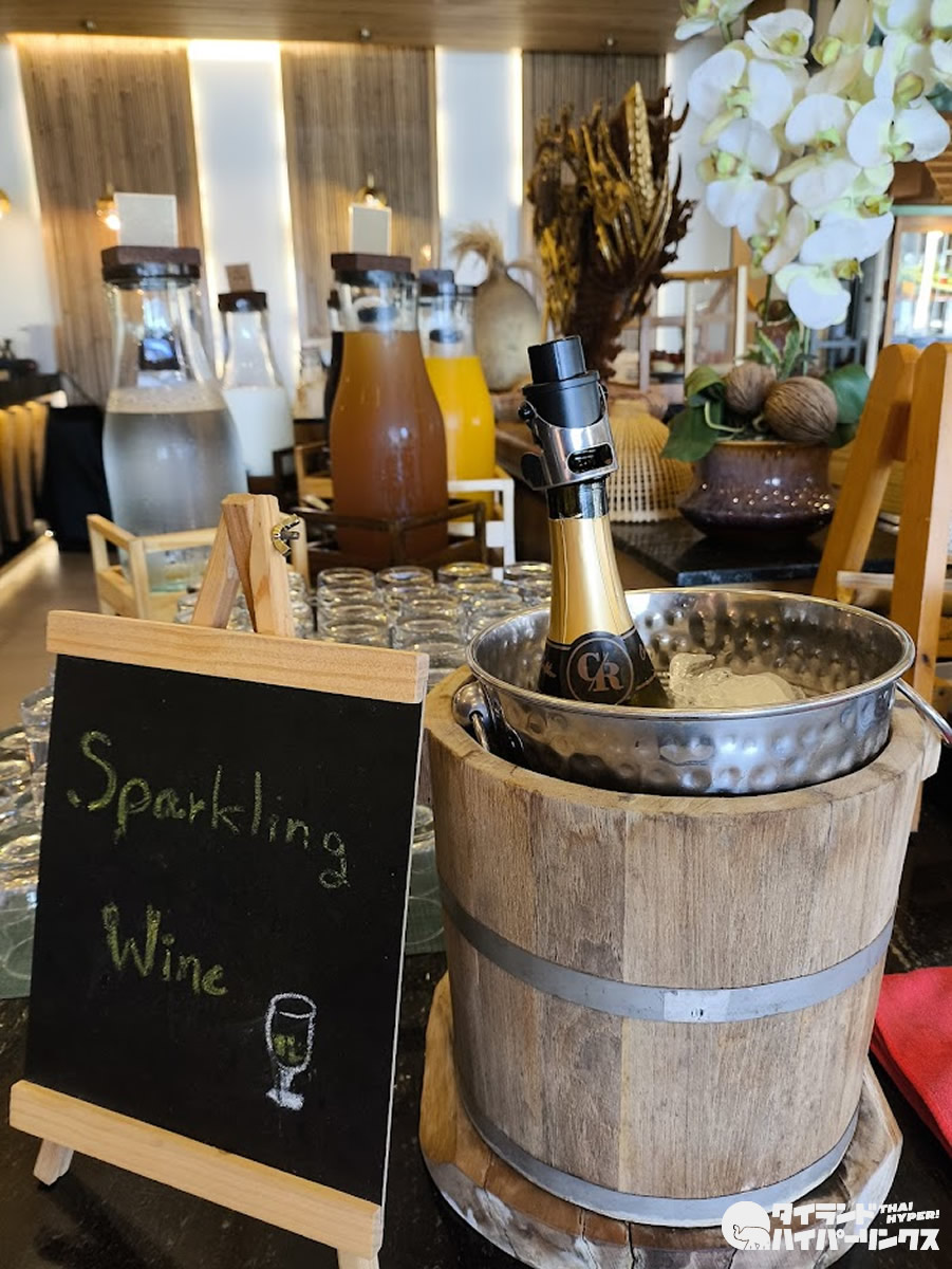 ちなみにこのホテル、朝食会場にもスパークリングワインのボトルが置いてあって飲み放題、たっぷりお酒を飲みながらゆっくりとプーケットの休日を過ごしたい方は、それだけで「シネープーケット ラグジュアリーホテル(Sinae Phuket Luxury Hotel )」を選ぶ価値があるかもしれません!