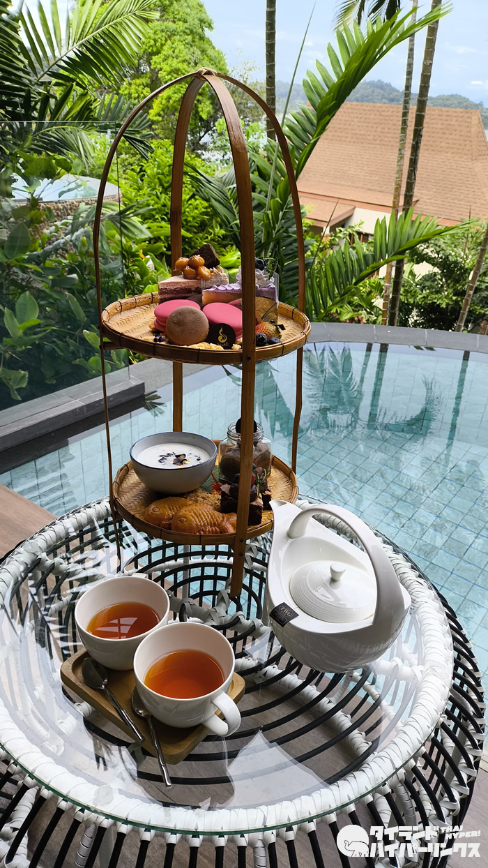 ランチのあとにはアフタヌーンティーをオーダーし、プールサイドでのセッティングをお願いしました。