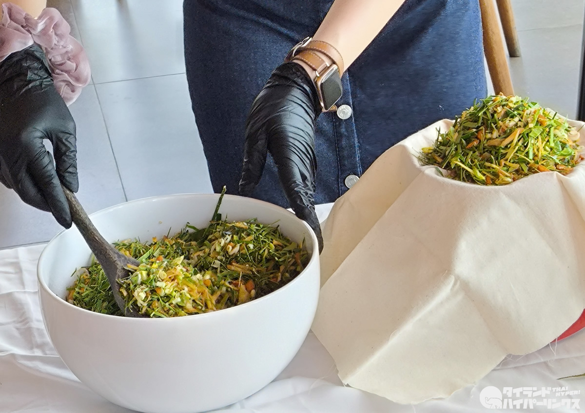 タイのスパでお馴染みのハーバルボール作り体験です!