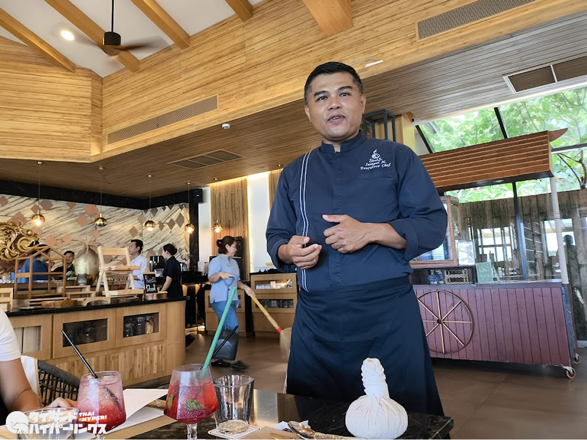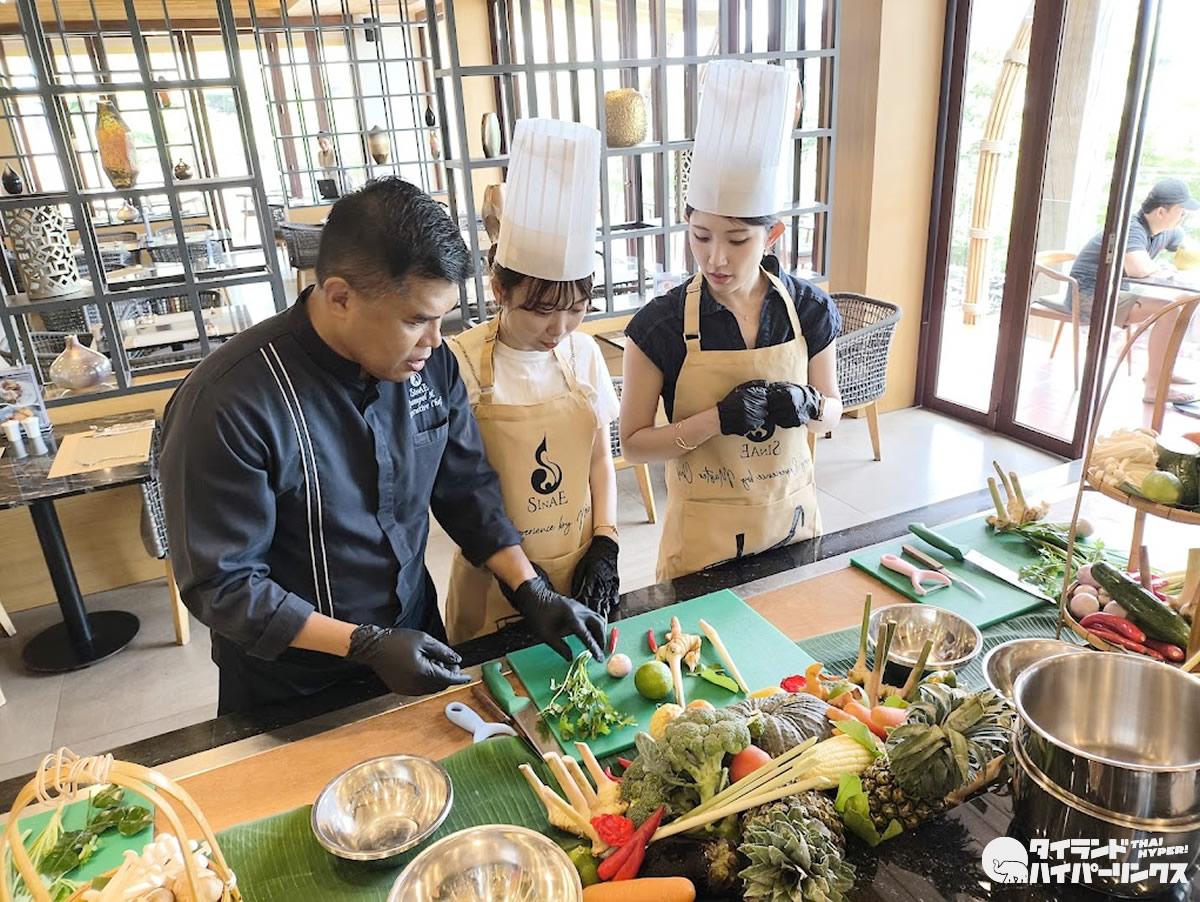 タイ料理クラスにも参加しました。価格は一人1800バーツで、カップルだと3500バーツ。シェフの指導の元で、4種類のタイ料理を作り、それを実際にいただくという楽しいコースです!用意されていた「シネープーケット ラグジュアリーホテル(Sinae Phuket Luxury Hotel )」のロゴ入りのエプロンは持ち帰り可能です!