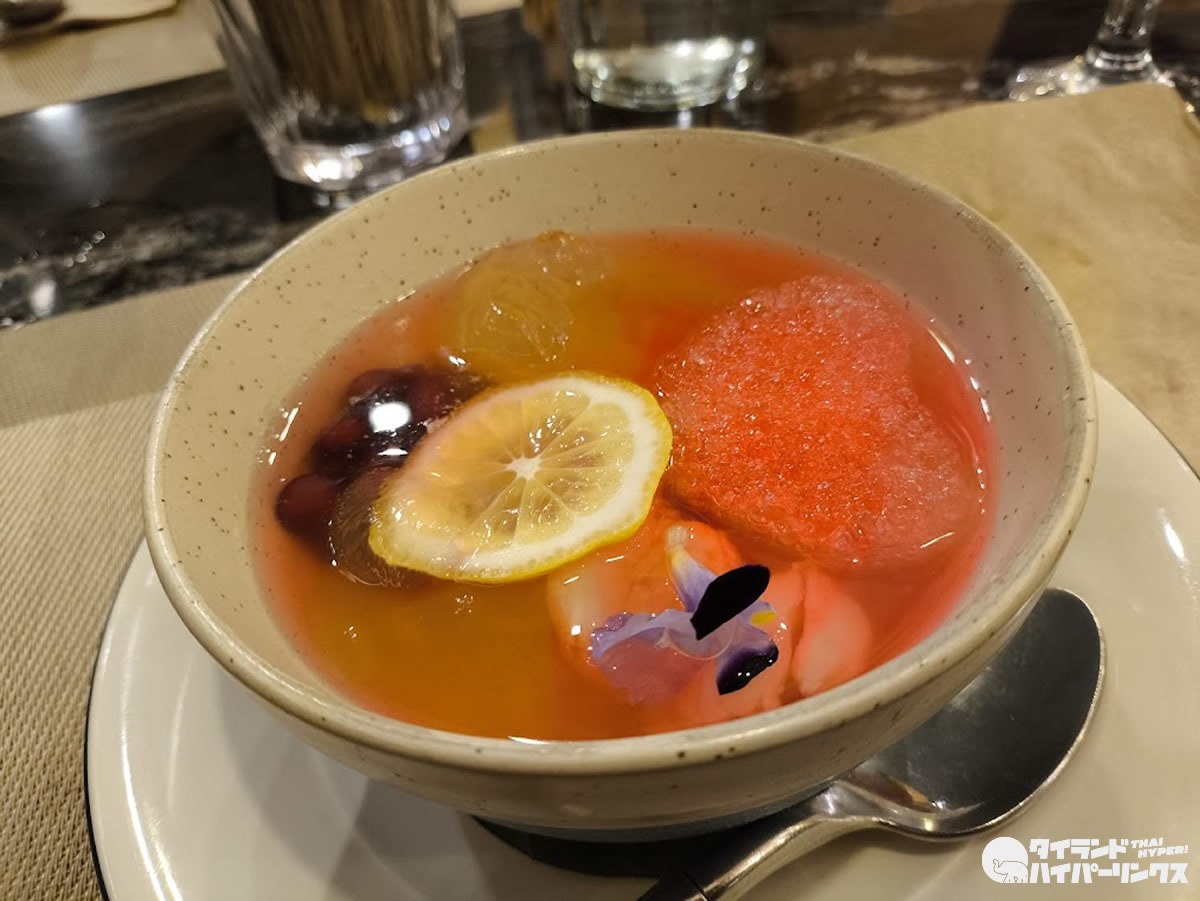 プーケットスイーツ「オーエオ」。中のゼリーがオーエオで、ステーキの後にいただいたサッパリした甘さの冷たいオーエオは最高でした!