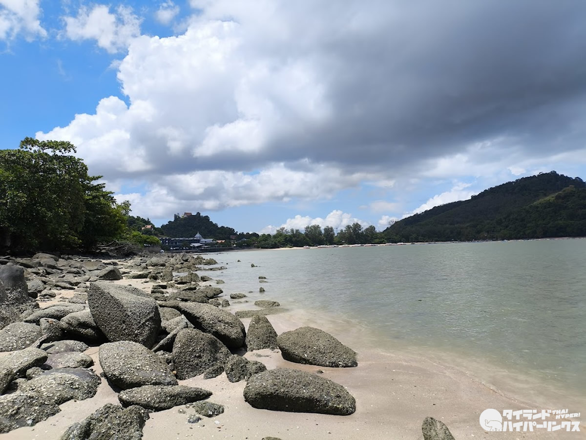 シネープーケットの前の道路を超えるとビーチが広がっています