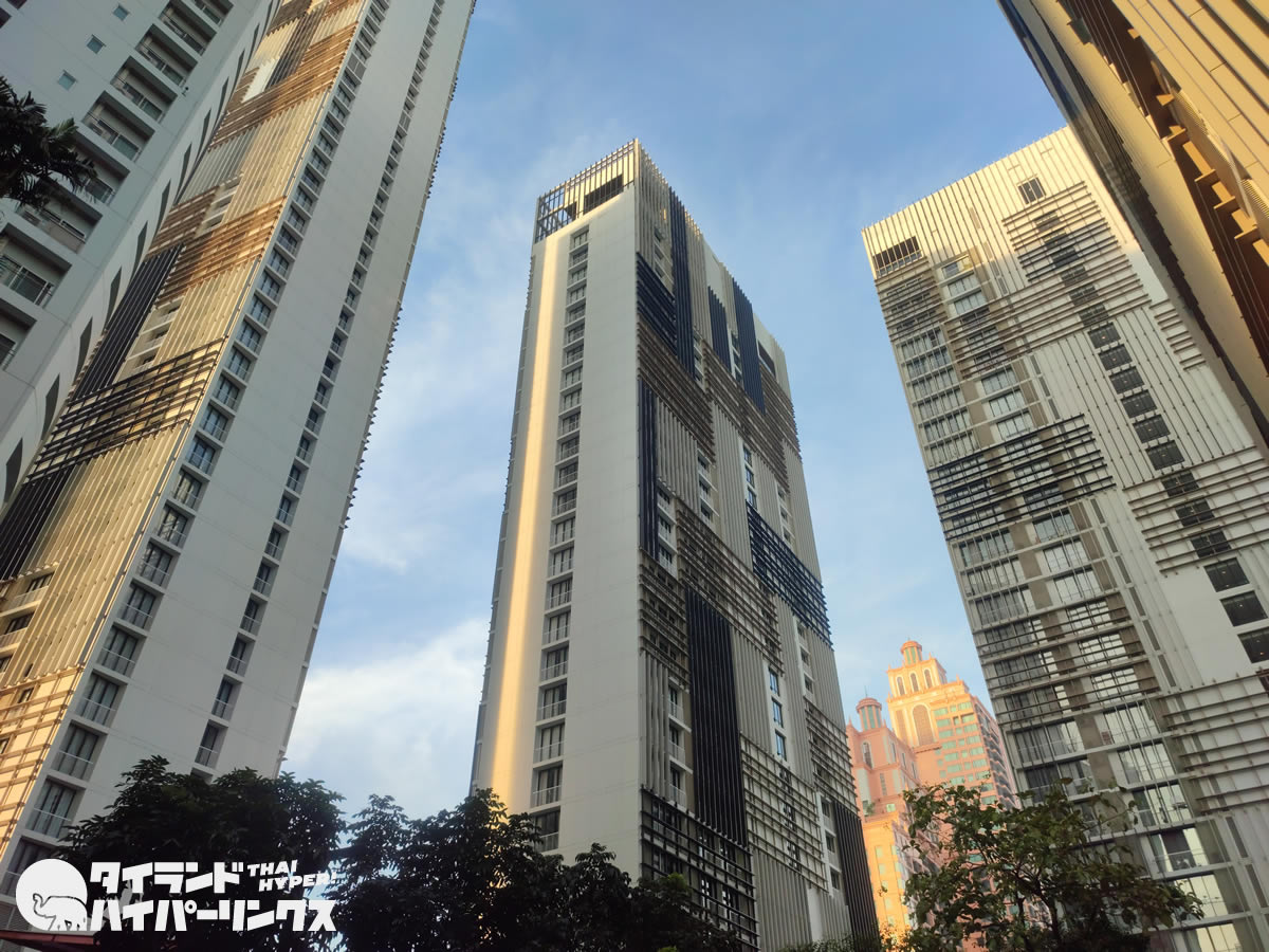 「The Park at EM District(ザ・パーク アット エム ディスクリクト)」は、全6棟のサービスアパート群である「PARK ORIGIN PHROM PHONG(パーク オリジン プロムポン)」の中の一つで、Ascott(アスコット)が運営。日本人の居住率が8割という、28階建ての人気の物件です。