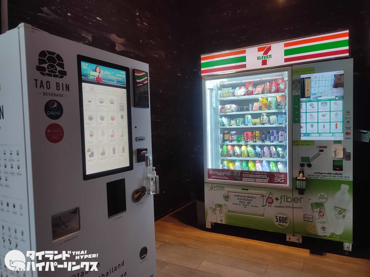 コンビニは通りまで出なければありませんが、「The Park at EM District(ザ・パーク アット エム ディスクリクト)」の入り口にはセブンイレブンの自動販売機が設置されています。ちょっとしたものが購入できるので、便利に使えるでしょう。またTAO BINは人気の最近人気であちこちで見かけるコーヒー・紅茶自動販売機ですね。