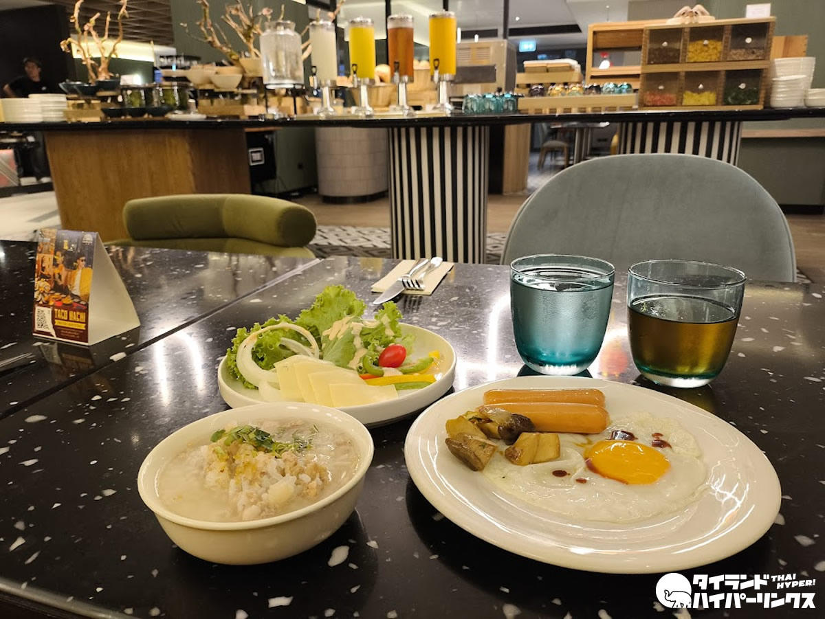 お楽しみの朝食ビュッフェは5階にあるレストラン「TRIBE TABLE」へ。午前6時半から10時半までが朝食の時間。早い時間に訪れてみると、まだ誰もおらず独占状態でした。(食事中に続々と他のお客さんがやってきました)