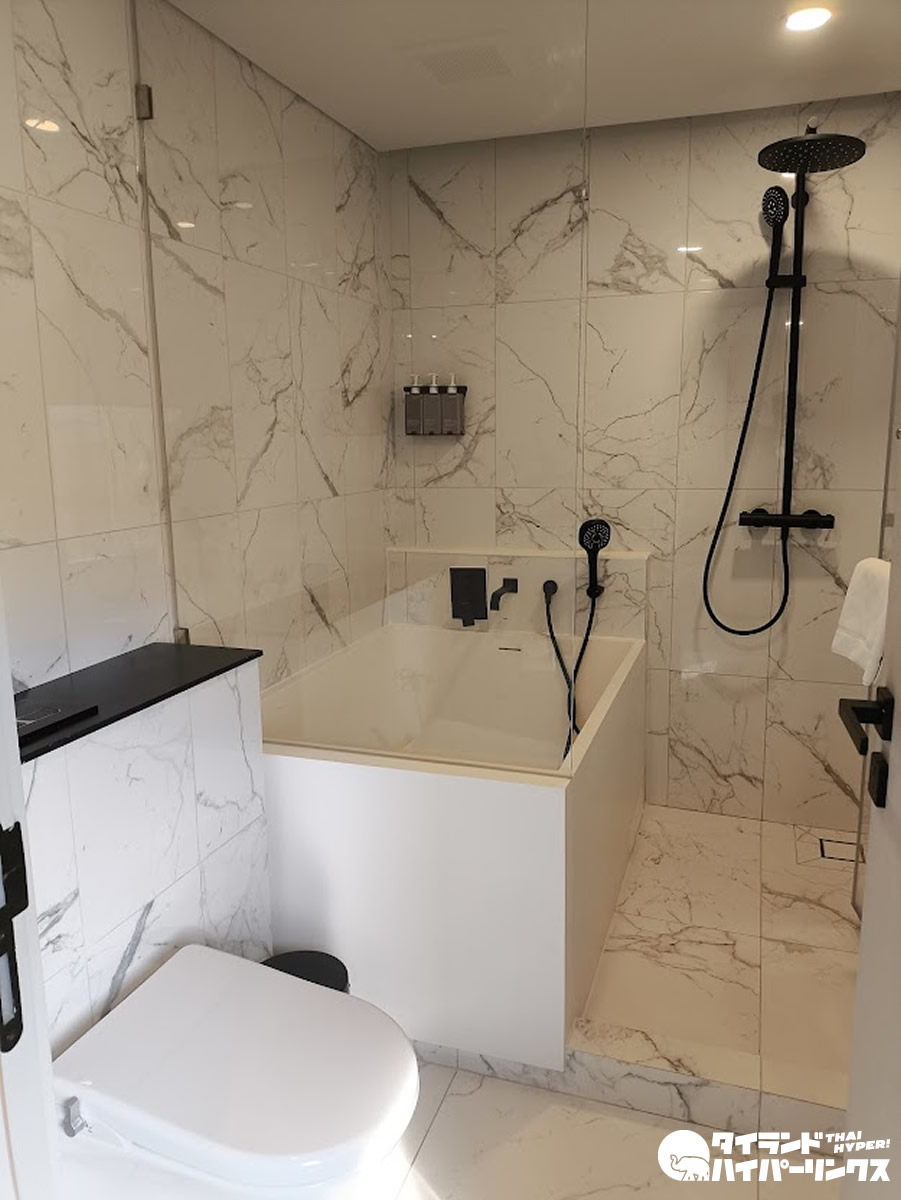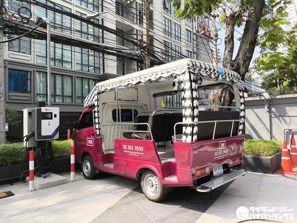 TRIBE Living Bangkok Sukhumvit 39は、シンプルでスタイリッシュなデザインが特徴の4つ星ホテルです。世界的ホテルチェーンのアコーグループによるホテルというのも、安心して宿泊できる要素の一つ。館内にはレストランやカフェ、ルーフトップバー、プール、スパやOnsen(本物の温泉ではない浴場)などがあり、外に出ずとも一日を快適にホテル内で過ごせること間違いなしです。駅に向かうなら、トラック型バスのシャトルサービスが便利です。