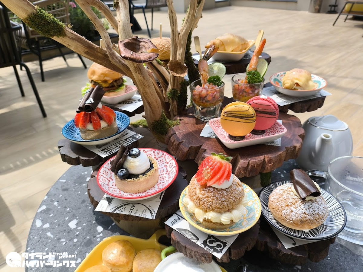 バンコクのホテルステイといえば、忘れてはならないのが午後のティータイムを楽しむアフタヌーンティー。美味しい紅茶でひとときを過ごしたいという方の他にも、「きれいな写真を撮りたい」という方も多いようで、TRIBE Living Bangkok Sukhumvit 39では、明るいプールサイドでのアフタヌーンティーがおすすめ。写真を撮り終えたら、外は暑いの室内に入っていただきましょう!