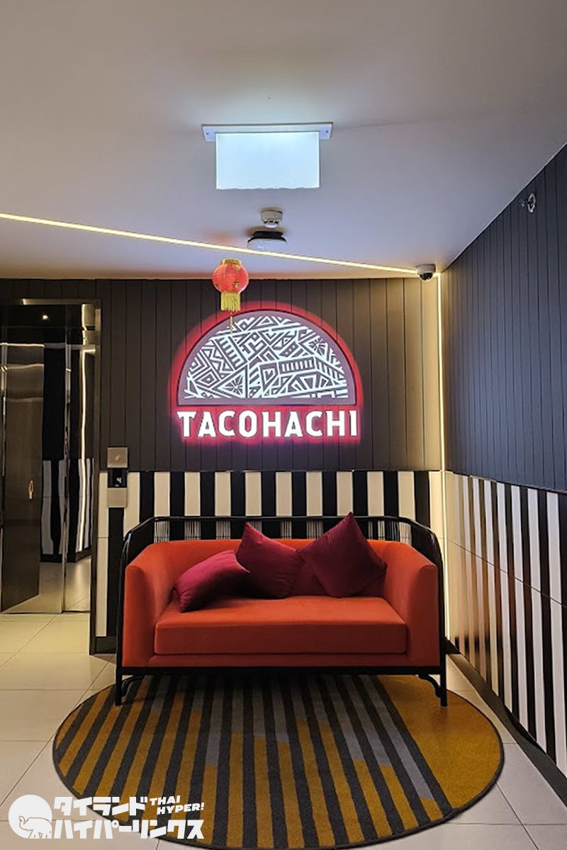 夕食で訪れたのは、27階にあるメキシコ料理×日本料理のダイニングレストラン「Taco Hachi」でした。1階奥のエレベータから27階へ向います。営業時間は17時半から0時まで。