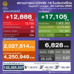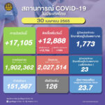 タイ保健省は2022年4月30日(土)朝、1日で確認された新型コロナウイルス陽性者が12,888人で[...]