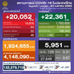 タイ保健省は2022年4月23日(土)朝、1日で確認された新型コロナウイルス陽性者が20,052人で[...]