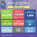 タイ保健省は2022年4月26日(火)朝、1日で確認された新型コロナウイルス陽性者が13,816人で[...]