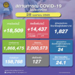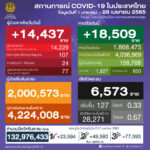 タイ保健省は2022年4月28日(木)朝、1日で確認された新型コロナウイルス陽性者が14,437人で[...]