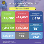 タイ保健省は2022年4月29日(金)朝、1日で確認された新型コロナウイルス陽性者が14,053人で[...]