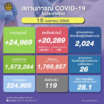 タイ保健省は2022年4月15日(金)朝、1日で確認された新型コロナウイルス陽性者が20,289人で[...]