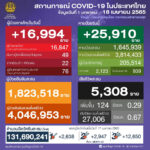 タイ保健省は2022年4月19日(火)朝、1日で確認された新型コロナウイルス陽性者が16,891人で[...]