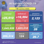 タイ保健省は2022年4月18日(月)朝、1日で確認された新型コロナウイルス陽性者が16,994人で[...]