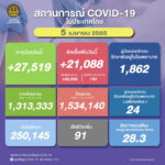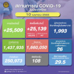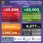 タイ保健省は2022年4月9日(土)朝、1日で確認された新型コロナウイルス陽性者が25,298人で、[...]