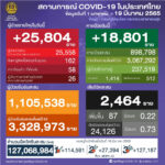 タイ保健省は2022年3月19日(土)朝、1日で確認された新型コロナウイルス陽性者が25,804人で[...]