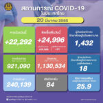 タイ保健省は2022年3月20日(日)朝、1日で確認された新型コロナウイルス陽性者が24,996人で[...]