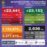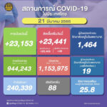 タイ保健省は2022年3月21日(月)朝、1日で確認された新型コロナウイルス陽性者が23,441人で[...]