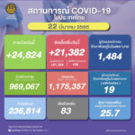 タイ保健省は2022年3月22日(火)朝、1日で確認された新型コロナウイルス陽性者が21,382人で[...]