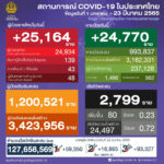タイ保健省は2022年3月23日(水)朝、1日で確認された新型コロナウイルス陽性者が25,164人で[...]