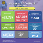 タイ保健省は2022年3月24日(木)朝、1日で確認された新型コロナウイルス陽性者が27,024人で[...]