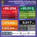 タイ保健省は2022年3月26日(土)朝、1日で確認された新型コロナウイルス陽性者が26,234人で[...]