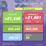 タイ保健省は2022年3月6日(日)朝、1日で確認された新型コロナウイルス陽性者が21,881人で、[...]