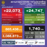 タイ保健省は2022年3月3日(木)朝、1日で確認された新型コロナウイルス陽性者が23,618人で、[...]