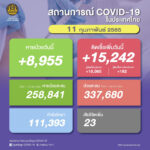 タイ保健省は2022年2月11日(金)朝、1日で確認された新型コロナウイルス陽性者が15,242人で[...]