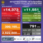 タイ保健省は2022年2月15日(火)朝、1日で確認された新型コロナウイルス陽性者が14,373人で[...]