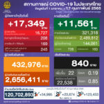 タイ保健省は2022年2月17日(木)朝、1日で確認された新型コロナウイルス陽性者が17,349人で[...]