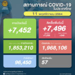 タイ保健省は2021年11月11日(木)朝、1日で確認された新型コロナウイルス陽性者が7,496人で[...]