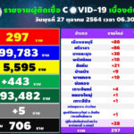 タイ東部チョンブリ県は2021年10月27日(水)朝6時半、新型コロナウイルスの最新の感染状況を発表[...]