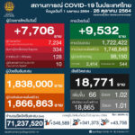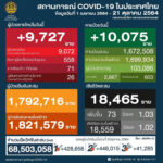 タイ保健省は2021年10月21日(木)朝、1日で確認された新型コロナウイルス陽性者が9,727人で[...]