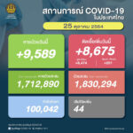 タイ保健省は2021年10月24日(日)朝、1日で確認された新型コロナウイルス陽性者が9,351人で[...]