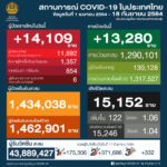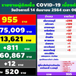 タイ保健省は2021年9月18日(土)朝、1日で確認された新型コロナウイルス陽性者が14,109人で[...]